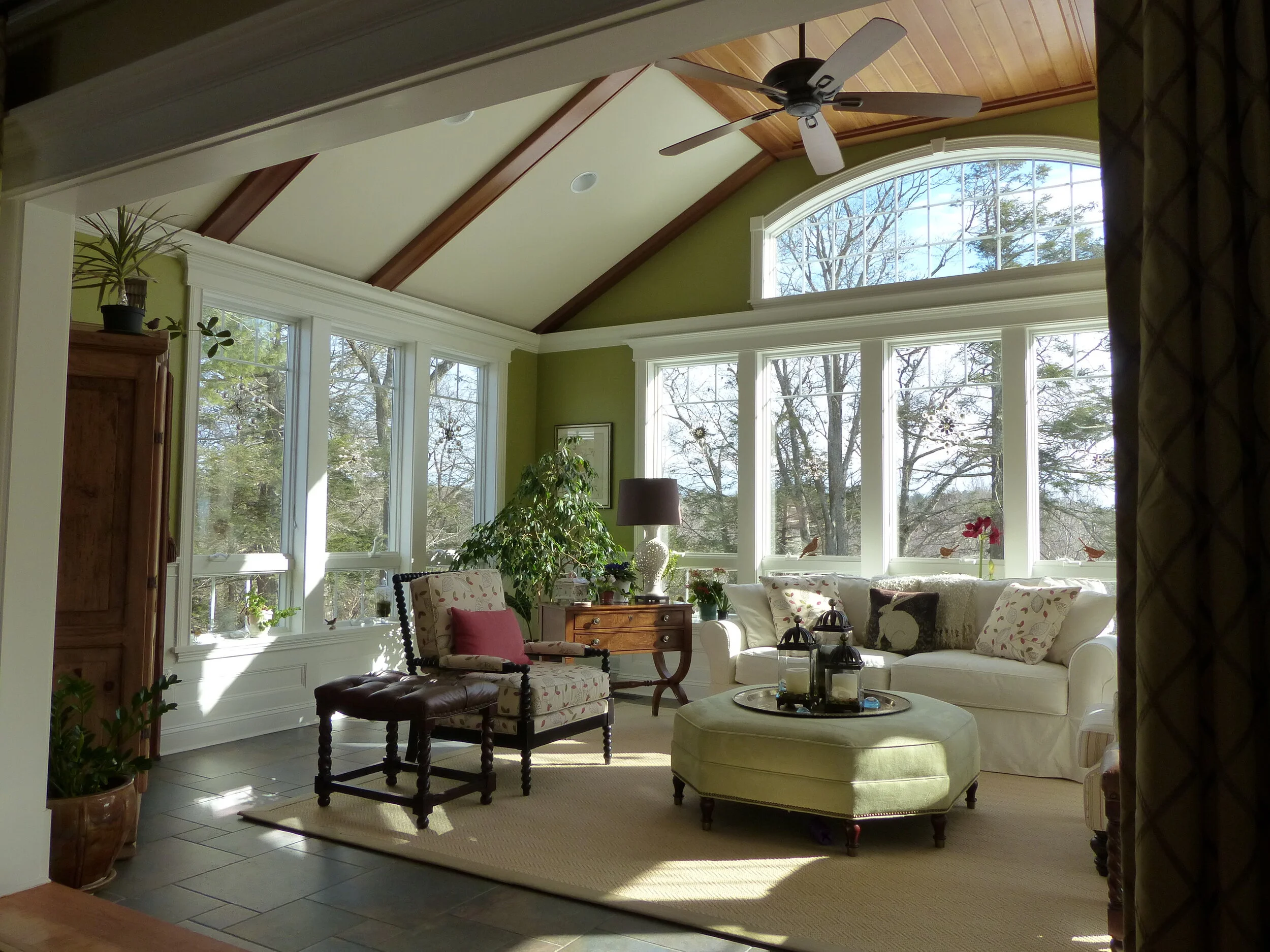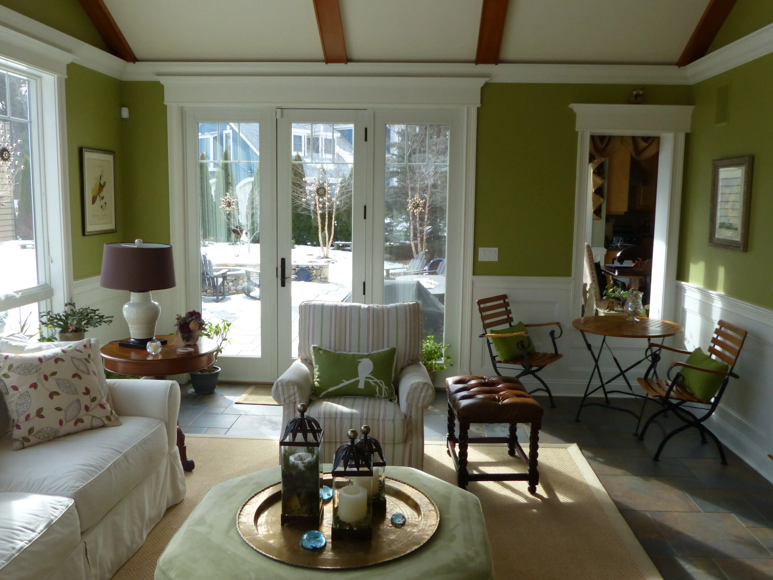 The owners enjoyed their finely detailed living room, and the outdoor patio, but were looking for middle ground space that would connect the two - an inside/outside space. In short, they wanted more sunshine. Natural light was the guiding driver for this design process, along with a year round connection to the exterior patio and natural environment of the back yard and beyond.